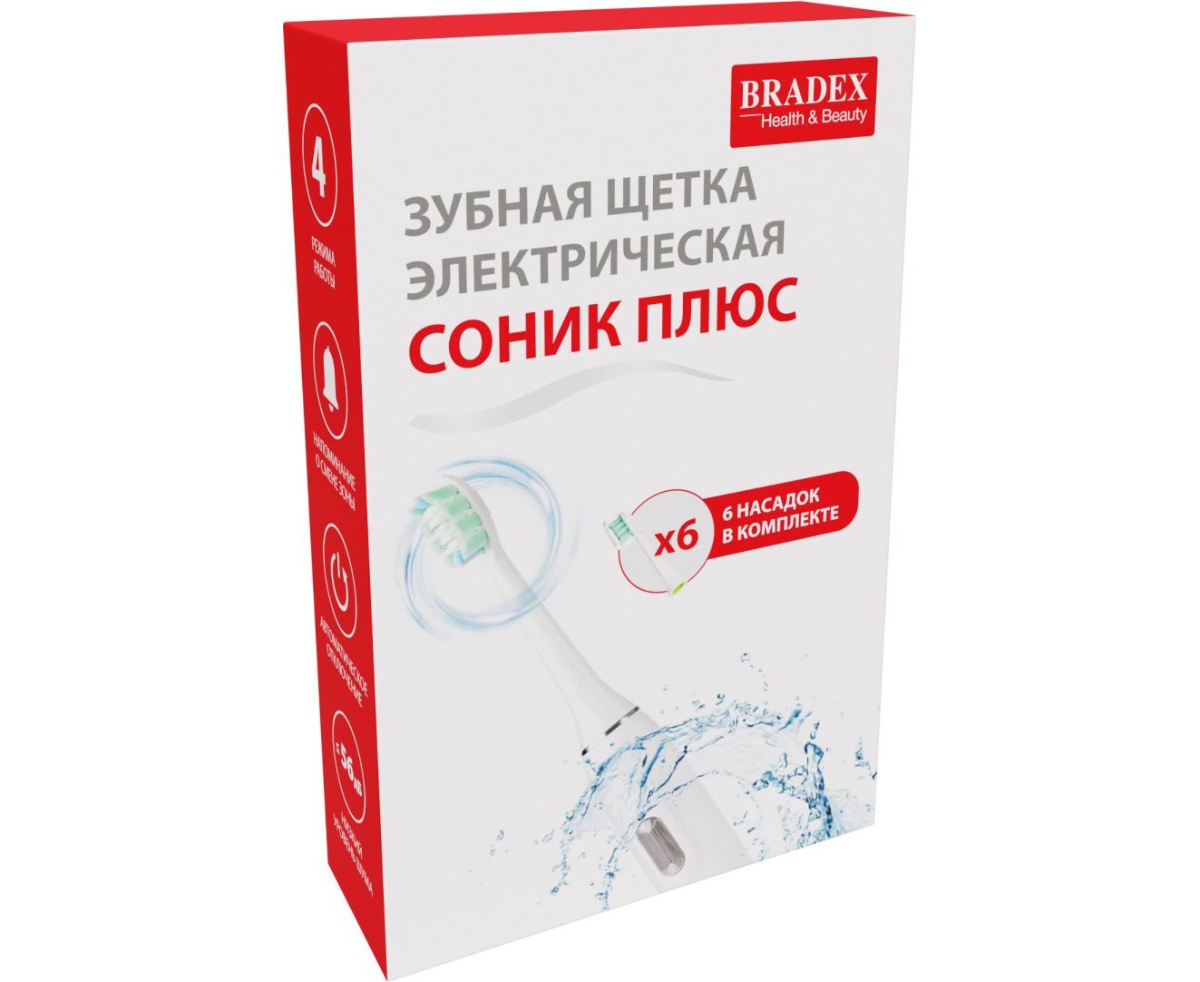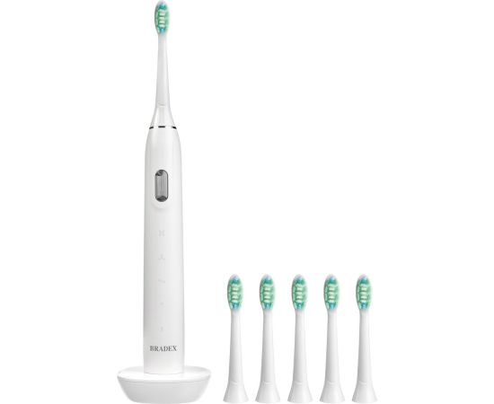 Зубная щетка электрическая BRADEX KZ 1546 Соник Плюс 6 насадок белая