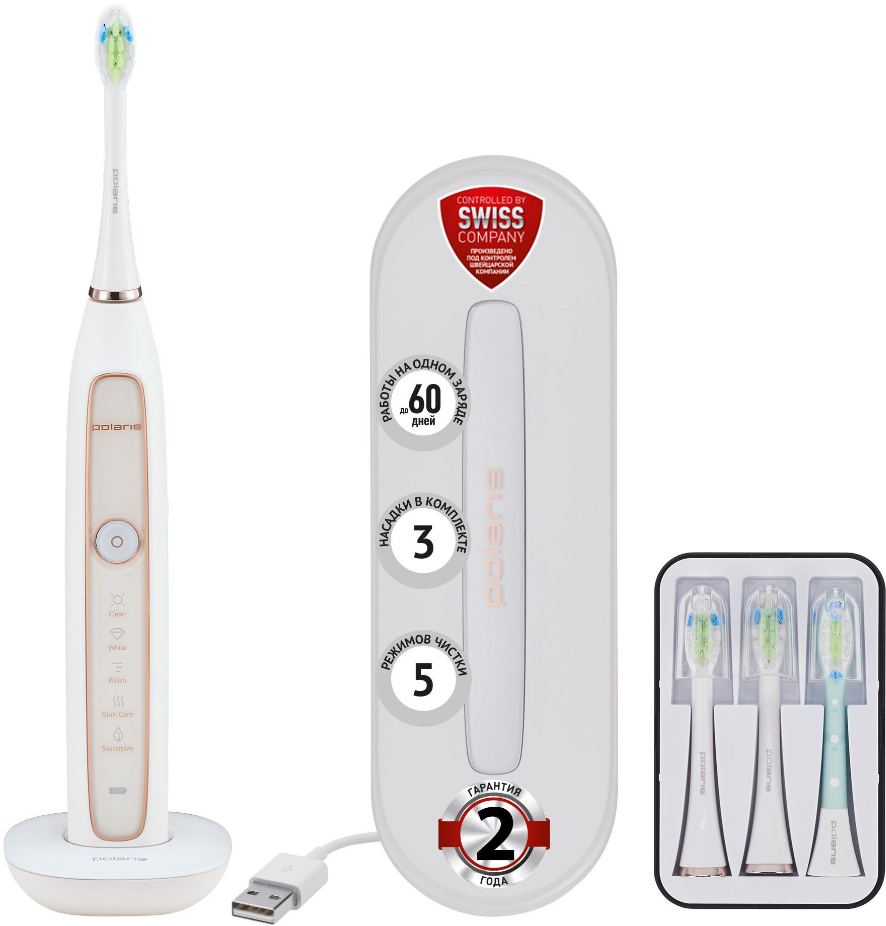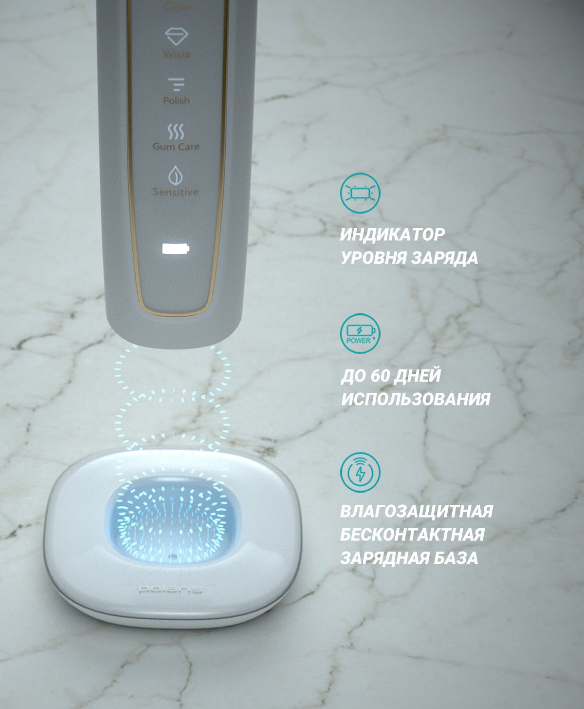 Описание: Электрическая зубная щетка Polaris PETB 0101 с уровнем влагозащиты IPX7 работает до 60 дней работы без подзарядки в режиме Sensitive. Имеется дорожный футляр c USB зарядкой и бесконтактное зарядное устройство. Автоматическое отключение через 2 минуты.